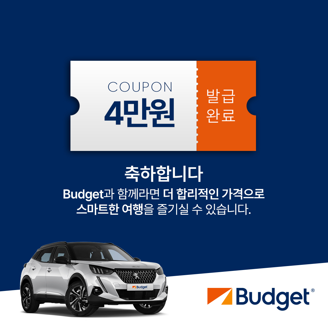 Budget렌터카 한국웹사이트를 통하여 33개국 선불 결제 예약 시 대여 요금 최대 10% 할인 혜택!